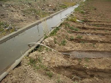 the ditch behind the plastic dam, the farmer began ‘setting the
